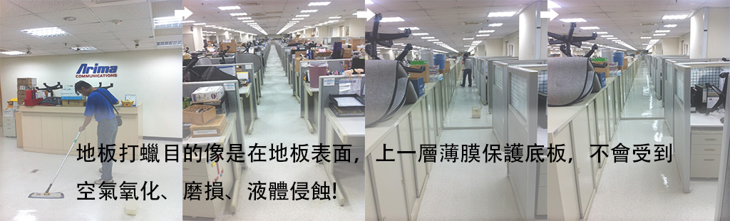 木質地板打蠟、塑膠地板打蠟、樓梯打蠟的定期保養,因為地板會有頑垢難以清除,所以定期的地板打蠟清潔能夠將累積的污垢一次清潔完成。使用良好的地板蠟與機器設備,專業的施工水準,地板打蠟工程結束後,可利用測光儀去檢測,最高亮度可達到85度,讓您的地板宛如鏡面般光亮。